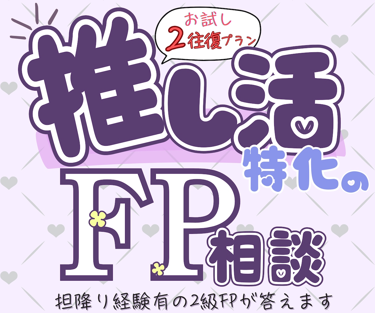 「推し活を辞めた」経験ファイナンシャルプランナーの知識を活かし、推し活とお金の悩みをお伺いして一緒に解決策を考えていくサービスです。